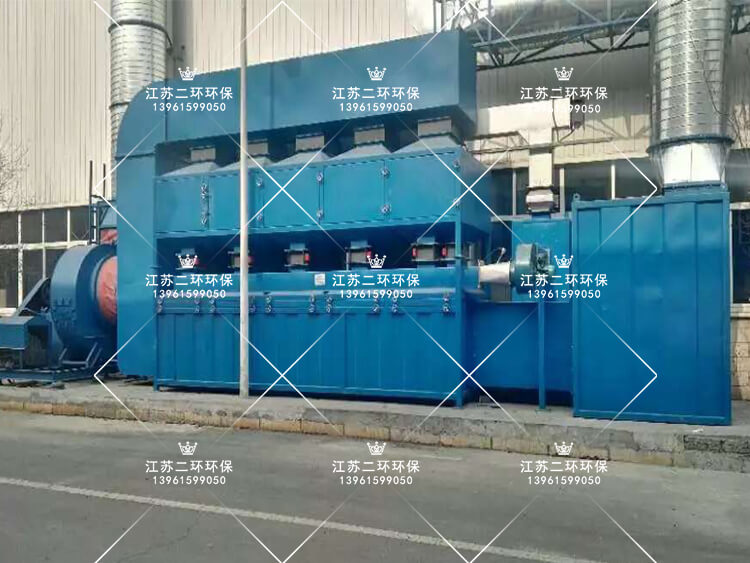 有機廢氣催化燃燒凈化設備采用活性炭吸附、熱氣流脫附和催化燃燒三種組合工藝凈化有機廢氣,利用活性炭多微孔及巨大的表面張力等特性將廢氣中的有機溶劑吸附,使所排廢氣得到凈化為第一工作過程;活性炭吸附飽和后,按一定濃縮比將吸附在活性炭上的有機溶劑用熱氣流脫出,并送往催化燃燒床為第二工作過程;進入催化燃燒床的高濃度有機廢氣經過進一步加熱后,使廢氣升溫到催化起燃溫度(~250℃);然后進入催化反應床,在催化劑的活性作用下,轉化為二氧化碳和水,分解釋放出的熱量經高效換熱器回收后用于加熱進入催化燃燒床的高濃度有機廢氣為第三工作過程。上述三個過程在運行一定時間達到自平衡后,脫附、催化分解過程無需外能源加熱。