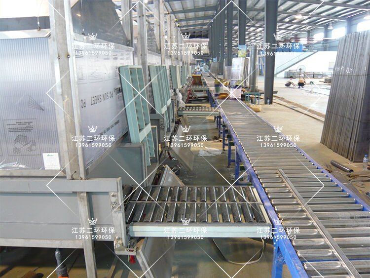 電池化成線,又稱為電池外內化成酸霧回收裝置。電池內化成充電過程中,加酸通電發生化學反應,生成鉛氧化物活性物質。整個系統有酸槽、酸霧吸罩,酸霧風管、酸霧凈化塔構成。類似酸洗槽、磷化槽、電解槽裝置。
